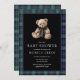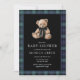 Convite Ralph Teddy Bear Navy Green Plaid Baby Shower