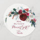 Será que você será minha menina das flores floral de inverno rosa peônia vermelha bordô e branca com galhos de pinheiro verde sazonal, frutos e folhagens fazendo um cartão personalizado em tons de aquarela sazonais modernos. Perfeito para o seu casamento floral de inverno / Natal elegante.