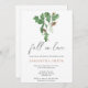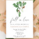 "Fall In Love" Convide seus hóspedes com este lindo galho da árvore de aquarela com bolotas. Chá de panela de outono. Use as ferramentas de design para editar o texto, alterar a cor e o estilo da fonte para criar um design de convite exclusivo. Chá de panela de queda elegante.