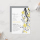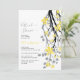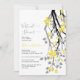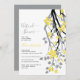 Um galho de cinza com flores amarelas iluminantes, chá de panela de casamento virtual. Um design para o seu chá de panela virtual com uma cinza em cascata e um galho preto com flores amarelas. A parte de trás é de cor de cinza.