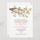 Ramificação com flores cor-de-rosa de cereja, convite de casamento da primavera, com um galho castanho de uma cerejeira com lindas flores de sakura rosa e folhas verdes. Este moderno design de modelo de casamento elegante e na moda floral é totalmente personalizável e faz parte de um jogo de casamento perfeito para o seu casamento de primavera ou jardim de verão.