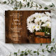 Convide os convidados a continuar a festa na manhã após a cerimônia de casamento com o charmoso convite de Brunch Pós-Casamento no Campo com Balde de Madeira e Margaridas Brancas. Este convite personalizado rústico chique em estilo de fazenda ou rancho para o Café da Manhã ou Almoço Pós-Casamento apresenta uma encantadora fotografia floral digitalmente aprimorada de um balde de madeira cheio de flores de margaridas brancas e um fundo de madeira de celeiro marrom envelhecido.