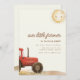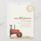 Comemore um aniversário de baixo para a terra com um charmoso cartão de convite com tema de fazenda com um trator vermelho vibrante que enfeite a frente e se envolve na parte de trás do convite. A frase brincalhona "Our Little Farmer is Turning (Idade)" captura a essência do tema, enquanto os detalhes da festa são mostrados elegantemente no lado direito do cartão. Este design encantador combina encanto rústico com um toque de capricho, estabelecendo o tom perfeito para uma celebração divertida e festiva de temas de fazenda.