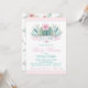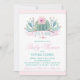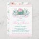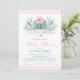Bebê do cacto feminino convida com bonito plantas cor-de-rosa pastel e cacto verde sobre fundo azul-de-coleira rosa e escuro. Esses convites para bebês cactos são facilmente personalizados para seu evento simplesmente adicionando seus detalhes. Você também pode mudar a cor de fundo neste adorável convite de chá de fraldas de cacto feminino.