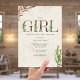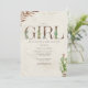 Tema do chá de fraldas Boho com a inscrição "Rapariga" em couro inspirou textura falsa decorada com boho cactus e outros designs botânicos e florais. Designs botânicos nos cantos. O fundo é a aquarela inspirada. O lado inverso é design de couros falsos inspirados.
