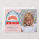 Este convite de aniversário de uma menina simples e fofa com sua foto e um fundo cor-de-rosa com um tubarão de boca aberta O verso apresenta um fundo azul marinho com padrões de onda branca. Perfeito para aniversários temáticos de tubarões, festas de piscina e festas de natação. Personalize para suas necessidades. Você pode encontrar mais produtos correspondentes na minha loja.
