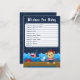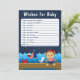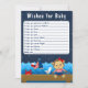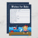 Este belo e divertido pedido de cartão de bebê apresenta um macaco náutico de marinheira num pavimento de madeira com uma gaivota e um caranguejo. Ao fundo há um pássaro vermelho giro em um veleiro, ondas oceânicas e um marinho azul estrelado céu noturno. O texto combina fontes em negrito e sem serifa para uma aparência na moda e moderna. Isto é perfeito para um chá de fraldas temático náutico.