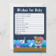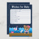 Este belo e divertido cartão de bebê apresenta um urso náutico de marinheiro num convés de madeira com uma gaivota e um caranguejo. Ao fundo há um pássaro rosa giro em um veleiro, ondas oceânicas e um marinho azul estrelado céu noturno. O texto combina fontes em negrito e sem serifa para uma aparência na moda e moderna. Isto é perfeito para um chá de fraldas temático náutico.