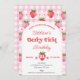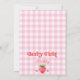 Rapariga Red Daisy Strawberry Berry Sweet primeiro aniversario Invitation Girl's berry temed first aniversy modelo com margarida branca e morangos rosa e vermelhos. Este convite para o primeiro aniversário de morango também apresenta um padrão de xadrez rosa e um arco branco. Ideal para uma festa de aniversário de verão para meninas.