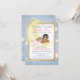 Menina étnica Twinkle reluzente convite para chá de fraldas de estrelinhas com adorável menina afro-americana étnica hispânica com arco rosa giro em uma bonito lua amarela com nuvens suaves segurando uma estrela amarela brilhante em um bonito rosa-estrela amarela e um fundo de folhas douradas. Você pode personalizar facilmente este belo convite de chá de fraldas de estrela cintilante para seu evento simplesmente adicionando seus detalhes no estilo de fonte de sua escolha. Este é um design impresso sem folha de alumínio real, brilho, etc.