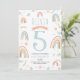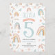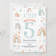 Convite Raparigas Cute Pink Boho Rainbow Floral Aniversári