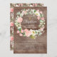 Lindas meninas convidadas para batismo apresentando uma paleta cor-de-rosa, dourada e branca com coroa verde e cruz sobre um fundo de madeira rústica. Visite nosso compro para ver a coleção inteira.