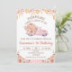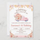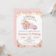 Meninas Pumpkin Truck Autumn Foliage Floral Birthday Convite para o aniversário da abóbora-coloração branca, com um caminhão de colheita rosa, uma abóbora grande, folhas de outono e arranjo floral de vassoura. Esta design é ideal para uma festa de aniversário temática de outubro ou de abóbora.