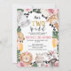 Raparigas Rosa Rosa Rosa Rosa Rosa Rosa Dois segundo aniversário Safari Selvagem Convite para duas segundos aniversários temáticas, de raça branca, com seis animais da selva giros, folhagem verde, rosas cor-de-rosa, balões e padrões de impressão de chita em cinzas e preto.