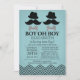 Chá de fraldas para gêmeos de bigode bonito! Perfeito para um chá de fraldas temático "Oh Boy", "Little Man" ou "Mustache" para garotos gêmeos! Nosso convite para bigode bonito e moderno apresenta um chapéu de topo, bigode e gravata de arco em um fundo azul com uma borda de fevron preta. Sacudir o convite para ver uma correspondência de volta para um toque extra especial.