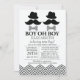 Chá de fraldas para gêmeos de bigode bonito! Perfeito para um chá de fraldas temático "Oh Boy", "Little Man" ou "Mustache" para garotos gêmeos! Nosso convite para bigode bonito e moderno apresenta um chapéu de topo, bigode e gravata de arco em um fundo branco nítido com uma borda de fêmur preta. Sacudir o convite para ver uma correspondência de volta para um toque extra especial.