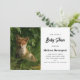 Convite para chá de fraldas com uma fotografia que inclui uma raposa de bebê com pelo vermelho e branco. Cercados por folhas e gramíneas verdes e peludas.