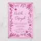 Convite Raspberry Pink QR Code Drawn Floral Photo Wedding