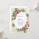 This design features a lush arrangement of vibrant red raspberries nestled among deep green leaves and delicate gold botanical line art. A soft pink watercolor wash creates a romantic backdrop for the fresh, fruity theme. Perfect for a warm summer event, the artwork combines natural elements with a touch of elegant shimmer.