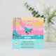 Convite de aniversário de 5 de patinagem retrorreflectora com listras e margaridas. Convite de festas Roller disco para aniversário de meninas.Este cartão apresenta calçados de patinação com margaridas e fundo em cores pastel em amarelo, azul, rosa e verde-mar.