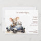 Na moda e divertido, este rato de aquarela fofo a conduzir um convites de festas de aniversários de criança de carro azul é perfeito para o seu pequeno. O design apresenta um mouse de aquarela pintado com uma mão bonita que está sorrindo enquanto se senta em um carro azul e um texto que pode ser personalizado para o ajustado das necessidades de planejamento do seu partido. A parte traseira apresenta um padrão de bolinhas sobre uma cor de fundo alterável.