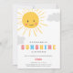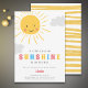 Moderno um pequeno raio de chá de fraldas solar com um sol alegre e colorido e tipografia. Personalize este design com suas próprias informações e torne-o realmente único. Ilustrada e projetada por Patricia Alvarez.