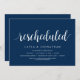 Altere o cartão de data. Este é o cartão de convite de Festa de casamento Reprogramado (adiado/adiado) (Novo plano), na fonte moderna mínima e simples design com tema azul Marinho.