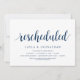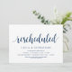 Mudar o cartão de data. Este é o convite para a festa de casamento Reagendado (adiado / adiamento) cartão (novo plano), no tema de design simples e minimalista moderno, fonte preta.