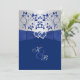 Este monograma de cinza azul real e prateada floral juntou corações convite 2 tem uma fita azul IMPRESSA SOBRE fita e arco, com um par de brilhante FAUX IMPRESSO e joia de diamante unindo corações. Todo o texto é personalizável. Se você precisar de outros itens neste estilo design, envie um email para niteowlstudio@gmail.com para solicitá-los.