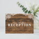Um lindo desenho rústico de madeira de celeiro e renda para esses cartões de recepção de casamento que você personaliza para o seu dia mágico que se aproxima.
