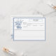 Maravilhoso para casais Foodie! Buquê chinês em vintage estilo azul e vestiários brancos da Chinoiserie adoram um cartão de receita para incluir no seu convite e pedir aos seus convidados para compartilhar uma receita clássica especial da família com o novo casal. Dois serviram para receitas longas e complicadas ou para incluir uma segunda receita como bônus. A Ásia influencia o padrão floral elegante azul e branco, a aquarela pintada trabalho de arte pela artista e designer internacionalmente licenciada, Audrey Jeanne Roberts, copyright.