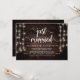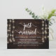 Recém-casados, Anúncio de Casamento Fugitivo / Cartão de Convite, em Madeira de Fazenda Rústica, design de Luzes de Corda. Isto é perfeito para o seu casamento e festa de celebração pós-casamento. Adicione seus detalhes em fonte / letra correspondente.