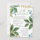 Anúncio de Recém-Casados - Convite de Recepção: Folhas de chá pintadas à mão em aquarela com verdejante jardim botânico. Tipografia moderna e tendência com campos de modelo de fácil edição. A escolha da fonte, layout e cores podem ser modificados de acordo com o estilo e gosto.