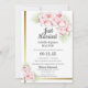 Um convite elegante para recepção pós-casamento com orquídeas rosa e uma borda assimétrica dourada estilosa.