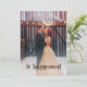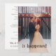 Este convite de anúncio de casamento e recepção de casamento rústico apresenta as palavras "aconteceu" em tipografia rústica e desgastada sobre sua própria foto e as informações do casamento e recepção no verso, e é o cartão perfeito para anunciar sua fuga. Fácil de personalizar com sua própria foto e texto. Perfeito para a recepção realizada em um casamento de celeiro, casamento ao ar livre ou local de casamento de fazenda.