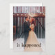 Este convite de anúncio de casamento e recepção de casamento com foto rústica apresenta as palavras "aconteceu" em tipografia rústica e desgastada sobre sua própria foto e as informações de casamento e recepção no verso, e é o cartão perfeito para anunciar sua fuga. Fácil de personalizar com sua própria foto e texto. Perfeito para a recepção realizada em um casamento de celeiro, casamento ao ar livre ou local de casamento de fazenda.