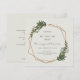 Anúncio de Casamento Boho Moderno / Casamento Íntimo com Convite para Recepção apresentando a mensagem "Surpresa! Nós nos casamos" junto com seus detalhes dentro de uma moldura geométrica dourada cercada por folhagens e flores brancas. O verso tem os detalhes do seu evento. Um Convite de Recepção Apenas Botânico que é perfeito para um casal que já é casado e quer celebrar com amigos e familiares depois de se casar em intimidade. Moldura por: <a href="http://www.freepik.com">Projetado por Freepik ()