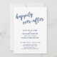 Convide seus convidados para a celebração do seu casamento com a ajuda desses cartões de convite minimalistas e sofisticados em azul-marinho-sobre-branco. No design eu usei uma fonte manuscrita casual e moderna para criar uma sobreposição de tipografia gráfica com a frase "felizes para sempre". Preencha os espaços em branco do modelo com seus detalhes para personalizar o design. Todas as camadas foram deixadas destrancadas para que você possa clicar e personalizar ainda mais e reposicionar o texto ou até mesmo alterar tamanhos ou fontes. A cor do fundo foi deixada branca, mas esta também é editável. Por favor, não hesite em entrar em contato para obter ajuda com a personalização.