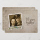 Convite de recepção para aniversário de 70 anos de casamento com moldura de foto personalizada antiga e buquê de margaridas e pérolas.