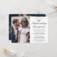 Se circunstâncias inesperadas causaram o adiamento da recepção do seu casamento, o primeiro aniversário é uma ótima oportunidade para celebrar um ano depois. Convide familiares e amigos para uma festa de 1º aniversário simplesmente elegante com este convite moderno e sofisticado de 2 fotos. Toda a redação é simples de personalizar para qualquer número de anos ou tipo de evento, incluindo uma cerimônia de renovação de votos, festa pós-fuga, celebração de casamento sequencial, hora do coquetel ou jantar. Personalize-o para incluir os detalhes de sua escolha, como data de casamento, código de vestimenta, RSVP, site, etc. (DICA DE COLOCAÇÃO DE IMAGEM: Uma maneira fácil de centralizar uma foto exatamente como você deseja é cortá-la antes de fazer o upload para o site da Zazzle.) O design moderno minimalista preto e branco apresenta duas fotos do casal recém-casado, caligrafia de script manuscrita moderna e tipografia elegante no estilo de máquina de escrever. Se você fugiu, teve um minimônial menor ou microcasamento, ou a celebração do seu dia especial teve que ser remarcada devido a um adiamento relacionado à pandemia de covid, a festa feliz para sempre ainda pode começar. Parabéns à noiva