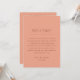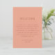 Defina o tom do fim de semana do seu casamento com este cartão de linha do tempo do itinerário, lindamente projetado em um delicado tom de pêssego. Sua cor sutil e convidativa complementa a tipografia limpa e moderna, oferecendo uma estética atemporal e fresca. Ideal para qualquer época do ano. Este cartão destaca cuidadosamente todos os momentos importantes da sua celebração, ajudando os convidados a se manterem informados e engajados. Seja o seu estilo charme rústico, elegância boêmia, suavidade romântica ou graça inspirada em jardim, este cartão de itinerário é perfeito. Use este cartão para dar as boas-vindas aos seus entes queridos. Escolha entre uma versão impressa ou um download digital para atender às suas necessidades.