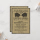 Convites rústicos estilo country para uma recepção de casamento casual ao ar livre. Silhuetas de porcos marrons sobre aniagem, convite totalmente impresso.