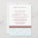 Cartões de convite à Recepção de casamento para recepção em separado, em vinho de burgundy elegante e contemporâneo, castanho-vermelho, azul-claro, branco elegante e clássico, com padrão de vindima floral clássico. Personalize esses convites com seus detalhes de casamento para convidar seus convidados para comemorar após um casamento particular ou de destino. Disponível em produtos correspondentes para todas as suas necessidades de casamento.