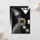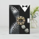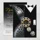 Um sofisticado casal art déco vestido com trajes de gravata preta - ela está num vestido prateado de leopardo decotado e ele está elegante num smoking preto. O centro da peça é uma ficha de cassino que contém texto personalizado e dados prateados caindo. Quer você esteja se casando em Las Vegas ou ficando na sua cidade natal e dando uma festa temática de cassino, este convite versátil e moderno é perfeito para qualquer ocasião especial - festas de aposentadoria, aniversários marcantes, festas de coquetel e jantar, jantares de ensaio, recepções de casamento, aniversários de casamento, eventos semi-formais e formais ou soirées festivas de feriado. Fácil de personalizar, use o botão "Personalizar" acima para adicionar seu próprio texto. Adesivos de favor correspondentes também disponíveis. Para perguntas ou pedidos especiais, por favor entre em contato com a designer em cheryl@cheryldanielsart.com. Se este convite não é exatamente o que você está procurando, todos os meus produtos podem ser personalizados para atender às suas necessidades específicas. Convite "