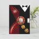 Um sofisticado casal art déco vestido com trajes de gala - ela com um vestido vermelho de leopardo decotado e ele com um smoking preto. O centro das atenções é uma ficha de cassino que contém texto personalizado e dados dourados caindo. Quer você esteja se casando em Las Vegas ou ficando na sua cidade natal e dando uma festa com tema de cassino, este convite versátil e moderno é perfeito para qualquer ocasião especial - festas de aposentadoria, aniversários marcantes, jantares e coquetéis, jantares de ensaio, recepções de casamento, aniversários de casamento, eventos semi-formais e formais ou festas de feriados. Fácil de personalizar, use o botão "Personalizar" acima para adicionar seu próprio texto. Adesivos de favor também disponíveis. Para perguntas ou pedidos especiais, entre em contato com o designer em cheryl@cheryldanielsart.com. Se este convite não é exatamente o que você está procurando, todos os meus produtos podem ser personalizados para atender às suas necessidades específicas. Convite "Recepção de Casamento Art Déco de