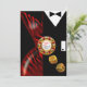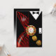 Um sofisticado casal art déco vestido com trajes de gala - ela com um vestido vermelho com estampa de zebra decotado e ele com um smoking preto elegante. O centro da peça é uma ficha de cassino que contém texto personalizado e dados dourados caindo. Quer você esteja se casando em Las Vegas ou ficando na sua cidade natal e dando uma festa com tema de cassino, este convite versátil e moderno é perfeito para qualquer ocasião especial - festas de aposentadoria, aniversários marcantes, coquetéis e jantares, jantares de ensaio, recepções de casamento, aniversários de casamento, eventos semi-formais e formais ou festas de feriados. Fácil de personalizar, use o botão "Personalizar" acima para adicionar seu próprio texto. Adesivos de favor também disponíveis. Para perguntas ou pedidos especiais, entre em contato com o designer em cheryl@cheryldanielsart.com. Se este convite não é exatamente o que você está procurando, todos os meus produtos podem ser personalizados para atender às suas necessidades específicas. Convite "Recepção de Casamento Art Déco