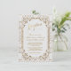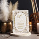 Design único e elegante com estilo ornamental de ouro falso vintage dos anos 20 Grande Gatsby em um fundo branco texturizado. Use a ferramenta Personalizar para adicionar suas informações. Para itens correspondentes, visite minha Coleção Art Déco Grande Gatsby Ouro Branco dos Anos 1920.