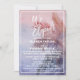 Este cartão de recepção de casamento às pressas ao pôr do sol tropical é perfeito para uma festa de casamento em um destino ou praia após o casamento. O design apresenta um deslumbrante pôr do sol em tons de rosa, roxo e azul em aquarela, completo com uma palmeira ao vento. Cartões de RSVP são vendidos separadamente.