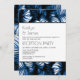 Convide seus amigos e entes queridos para a recepção do seu casamento para celebrar sua união recente com este convite azul e branco com palmeira tropical.