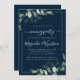 Convite Recepção de casamento Azul do Marinho Eucalyptus C